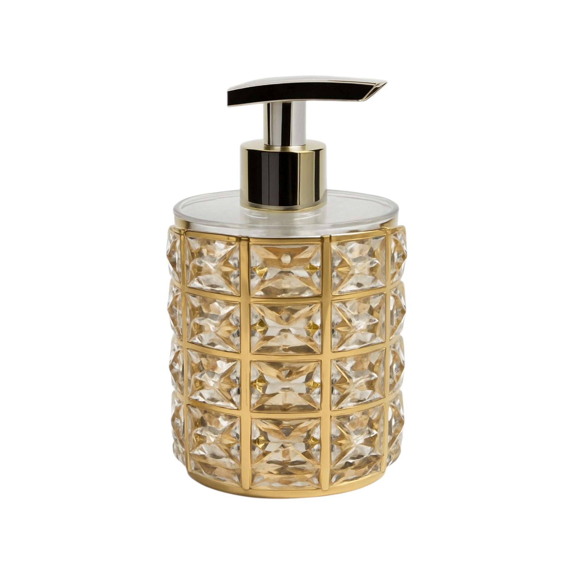 Adicione um toque de elegância à sua bancada com este sofisticado dispenser para sabonete líquido. Com design luxuoso, o corpo é estruturado com acabamento em efeito cristal e moldura dourada, criando um visual refinado que se destaca em qualquer ambiente.