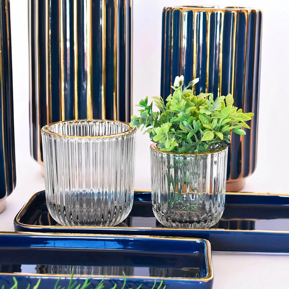 VASO LUMEN RISK TRANSPARENTE COM DETALHE DOURADO